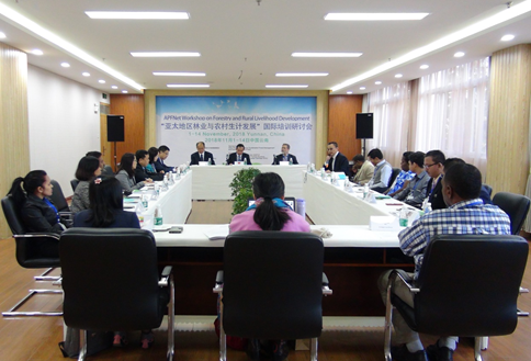 On the occasion of the 10th Anniversary of APFNet and in line with its Five-Year Strategic Plan of APFNet Training Programme, the Workshop on Forestry and Rural Livelihood Development has been commenced in the Center for International Exchange and Cooperation at Southwest Forestry University (SWFU) on 1st November. The workshop aims to assess the linkage between forest management and rural livelihood improvement and explore the ways in which the livelihoods of rural communities might be improved through better forest management; provide an overview of the experiences and best forestry practices aimed at enhancing rural livelihood development; and analyze and assess implications of key policy, institutional and technological developments and the potentials and limitations for livelihood improvement through biodiversity conservation and climate change mitigation and adaptation measures.