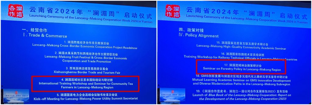 启动仪式上,云南省围绕经贸合作、跨境安全、人文交流、政策对接、文化体育等五大领域,发布了2024年澜湄合作的25个重点项目,亚太森林组织昆明中心具体承担 “澜湄流域社区茶农国际培训与研讨班”、“澜湄流域林业政策研讨会” 两个关键项目,为澜湄流域国家搭建学习和经验分享的国际合作平台,加强林业资源保护与管理合作,为推动区域林业可持续利用和生态保护贡献更大的力量。(文/图:张婉洁/初审:王俊/终审:沈立新/责任编辑:王俊)